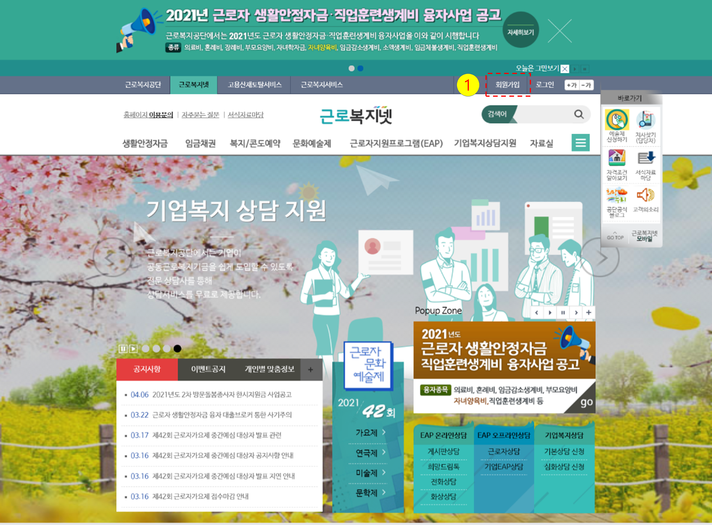 1) 근로복지넷 회원가입