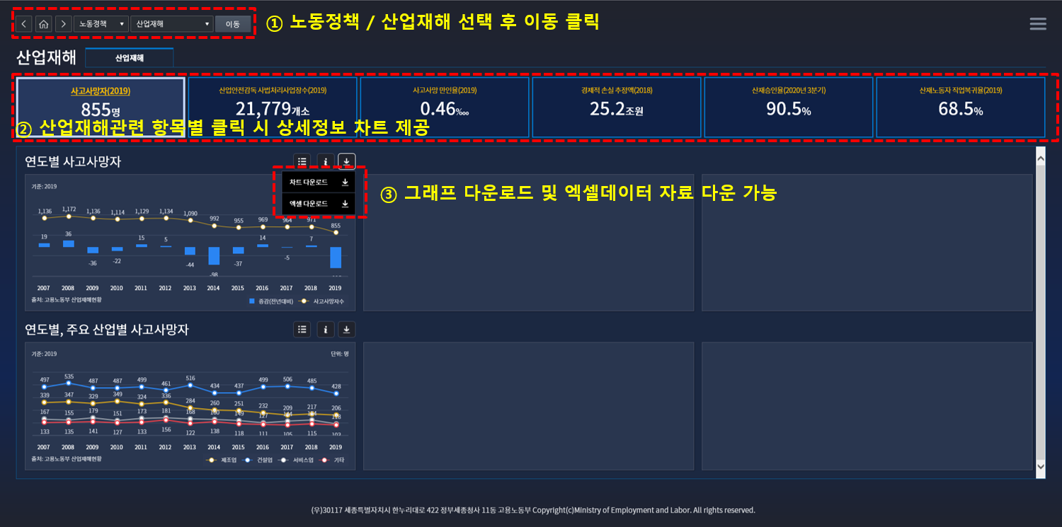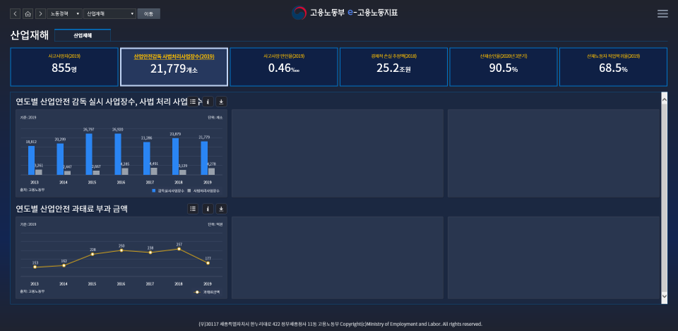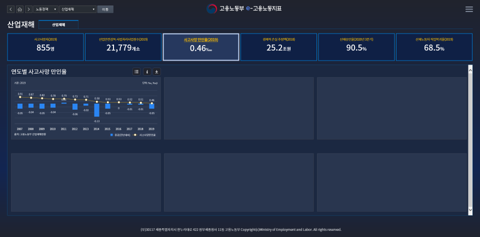 - 산업재해 관련 6개 항목에 대한 정보를 확인할 수 있다.